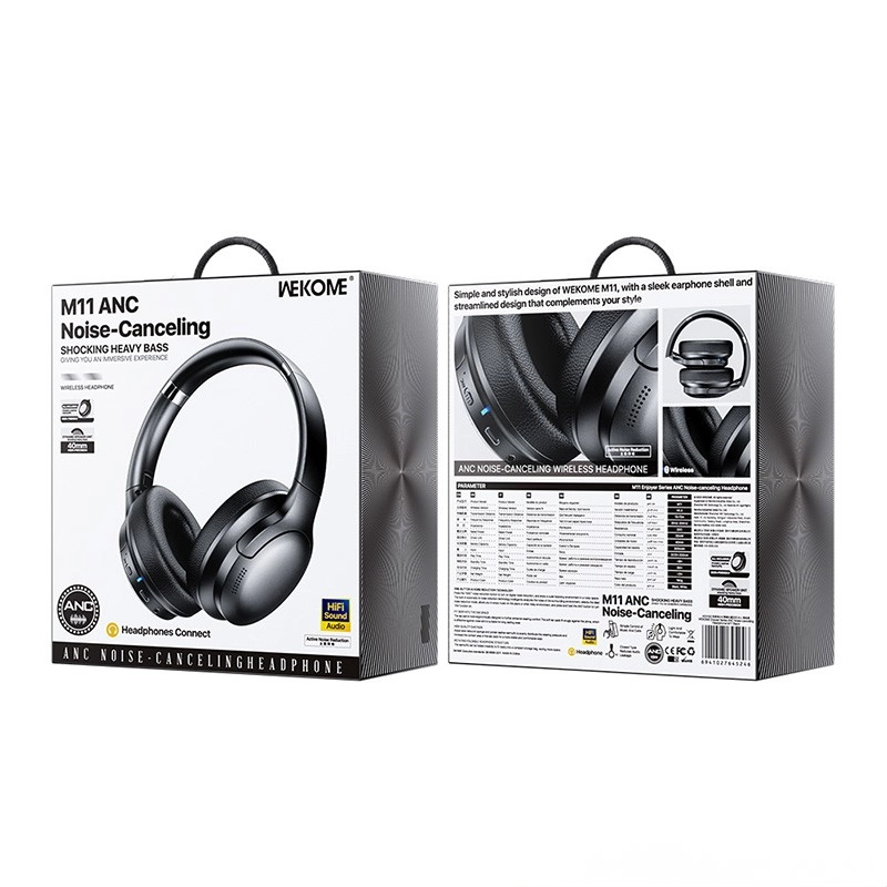 Uživajte u čistom zvuku i miru na putu i u uredu. WEKOME M11 donose Bluetooth 5.3 + EDR za stabilnu vezu, aktivno poništavanje buke (ANC) do 20 dB, 40 mm Hi‑Fi drivere i laganu sklopivu konstrukciju. Udobne jastučiće za uši od sintetičke proteinske kože, autonomiju do 8 sati reprodukcije i brzo USB‑C punjenje jamče sjajno iskustvo svaki dan.