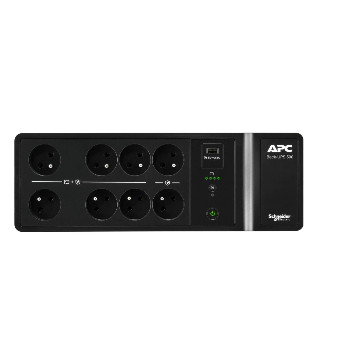 Ukupno 8 utičnica tipa E (FR) pokriva sve potrebe: 6 utičnica s baterijskim backupom i prenaponskom zaštitom te 2 utičnice samo s prenaponskom zaštitom. Integrirani USB‑A i USB‑C služe za brzo punjenje mobilnih uređaja. Pregledni LED indikatori i tipka za utišavanje alarma pružaju maksimalnu udobnost.