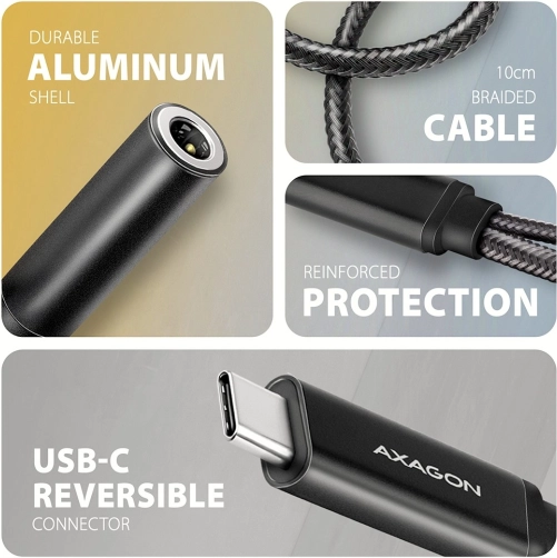 Adapter ADA-HCPD opremljen je visokokvalitetnim najlonskim opletenim kabelom za izdržljivost i 4-polnim TRRS stereo priključkom za slušalice s automatskim prepoznavanjem CTIA ili OMTP standarda. Može zamijeniti neispravnu integriranu zvučnu karticu u prijenosniku ili poslužiti kao rješenje za uređaje bez namjenskog mikrofonskog ulaza. Adapter se također može koristiti za povezivanje mobilnog uređaja s auto-audio sustavom preko AUX ulaza.
