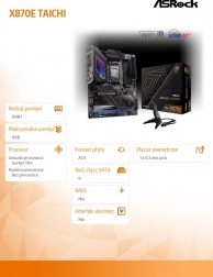 ASRock Taichi X870E pomiče granice performansi za AMD Ryzen procesore na ležištu AM5. Konstrukcija s 8‑slojnim, niskogubitnim PCB‑om serverske klase poboljšava integritet signala, što omogućuje puno iskorištavanje PCIe 5.0 kako za grafičku karticu, tako i za M.2 SSD. Premium 20K kondenzatori kapaciteta 1000 µF smanjuju valovitost, stabiliziraju izlaznu struju i donose veću pouzdanost cijelog sustava.
