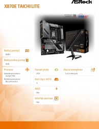 ASRock X870E Taichi Lite dizajnirana je za maksimalnu propusnost i dugotrajnu pouzdanost. Najnovija sučelja PCIe 5.0 za grafiku i Blazing M.2 otključavaju potencijal najbržih SSD‑ova, dok USB4 tipa C (40 Gb/s) ubrzava rad s vanjskim diskovima, dokovima i zaslonima. Wi‑Fi 7 (802.11be) i 5GbE LAN osiguravaju munjevitu i stabilnu mrežnu vezu s niskom latencijom.