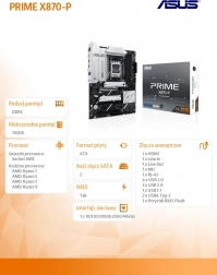 Ploča je dizajnirana za moderno radno i gamersko okruženje, uključujući zadatke s umjetnom inteligencijom. Podrška za brze DDR5 module, više M.2 utora za NVMe SSD te bogata povezivost s USB‑C, HDMI i LAN čine PRIME X870-P svestranim izborom za PC DIY entuzijaste i profesionalce.
