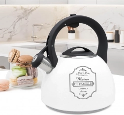 Tradicionalni čajnik Paris Maison izrađen je od izdržljivog nehrđajućeg čelika i plastike, što osigurava ne samo estetiku, već i otpornost na oštećenja. Opremljen je praktičnom zviždaljkom koja signalizira vrelu vodu, što je korisna funkcija za svakodnevnu upotrebu. Uklonjivi poklopac olakšava ulijevanje vode i čišćenje čajnika, čineći njegovo korištenje brzim i praktičnim.