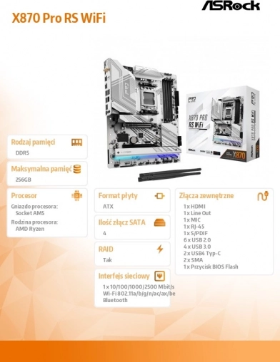 asrock x870 pro rs wifi – matična ploča am5 s ddr5, m.2 i usb4