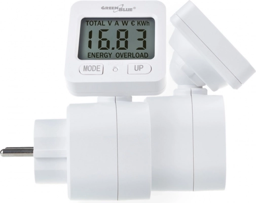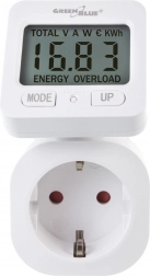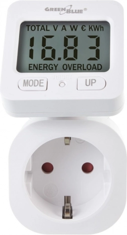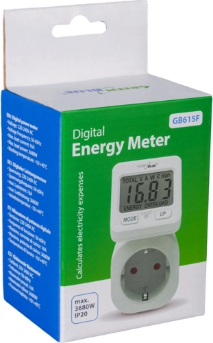 Mjerač energije GREENBLUE GB615 F precizno prikazuje napon, struju, snagu (W) te ukupnu potrošnju (kWh) i procjenu troškova. Zahvaljujući tome lako ćete identificirati neefikasne uređaje i odmah smanjiti račune za struju i ugljični otisak.