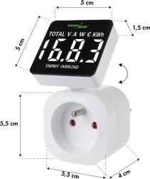 Mjerač energije GREENBLUE GB620E pametan je pomoćnik za kućne uštede. Dovoljno ga je priključiti između utičnice i uređaja te odmah vidite koliko struje uređaj stvarno troši. Zahvaljujući preglednom, rotirajućem zaslonu lako provjerite napon, struju, snagu u vatima i ukupnu potrošnju u kWh, uključujući procjenu cijene. To vam omogućuje prilagodbu navika i smanjenje nepotrebne potrošnje.