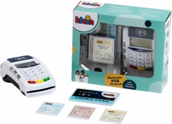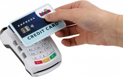 Set terminala sadrži jednu kreditnu karticu s funkcijom beskontaktnog plaćanja i 3 igraće potvrde/računa. Razgovor s kupcima na modernom platnom terminalu uči djecu komunikacijskim vještinama, a rukovanje platnom karticom pomaže razvoju motorike.