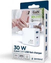 Ovaj moderni 30W GaN punjač spaja visoku snagu, kompaktne dimenzije i univerzalnu primjenu. Zahvaljujući priključcima USB‑C i USB‑A lako ćete puniti pametni telefon, slušalice, tablet pa i kompatibilno prijenosno računalo. Podrška protokola Power Delivery i Quick Charge 3.0 osigurava brzo i sigurno punjenje bez nepotrebnog čekanja.