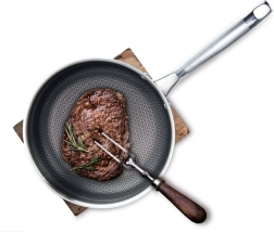 Čelična “saćasta” tekstura štiti površinu od ogrebotina i pri uporabi metalnih alata te omogućuje lako odvajanje namirnica.