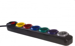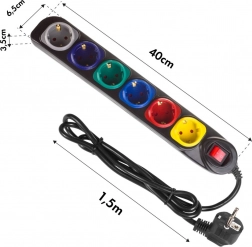 Svaka od šest utičnica ima drugu boju za laku identifikaciju priključenih uređaja – red u kabelima i pri punom opterećenju.