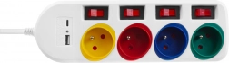 Produžni kabel Maclean idealno je rješenje za dom i ured, omogućujući istovremeno priključivanje više uređaja. Opremljen je s četiri obojene utičnice s pojedinačnim prekidačima za učinkovito upravljanje napajanjem, što pridonosi uštedi energije.