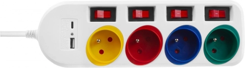 Četiri obojene utičnice s dječjom zaštitom osiguravaju sigurnost u kućanstvima s djecom i jednostavno razlikovanje pojedinih uređaja.