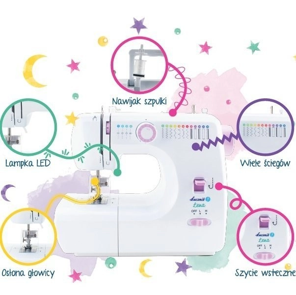 Mini šivaći stroj Łucznik Lena 2019 stvoren je za djecu koja sanjaju o vlastitom šivaćem stroju. Ima posebnu zaštitu od uboda u obliku štitnika koji okružuje iglu sa svih strana. Zahvaljujući tome, uporaba je maksimalno sigurna i vi kao roditelji možete biti mirni za prstiće svojeg djeteta.
