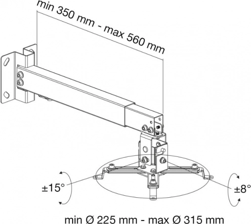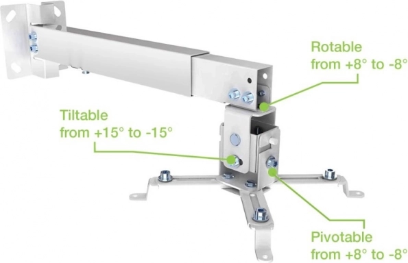 - Idealan kut projekcije osiguran je mogućnošću nagiba od ±15° i horizontalnog zakretanja od ±8°.