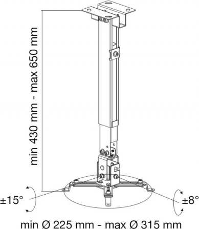 Ovaj univerzalni držač za projektore omogućuje ne samo sigurnu montažu na zid ili strop, već i optimalno usklađivanje projekcije. Zahvaljujući teleskopskoj ruci duljine od 43 do 65 cm, projektor se može smjestiti točno tamo gdje je najprikladnije.
