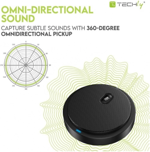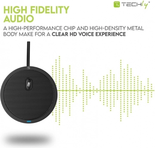 Mikrofon ravnomjerno hvata govor iz svih smjerova, pa se svi sudionici za stolom mogu uključiti bez pomicanja uređaja.