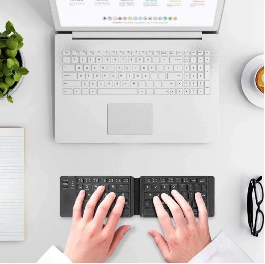 Lagana i kompaktna tipkovnica sklapa se u mali pravokutnik, pa je lako možete spremiti u džep ili malu torbu. Idealna za rad na putu.