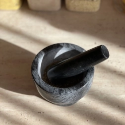 Mramor ne upija vlagu ni mirise, pa se okusi ne miješaju, a rezultati su uvijek čisti i intenzivni. Mužar je idealan za usitnjavanje začina i bilja, pripremu pasta, pesta, usitnjavanje orašastih plodova, šećera i sjemenki. Dio pakiranja su i zaštitno kolor pakiranje te transportna kartonska kutija za sigurnu dostavu i skladištenje.