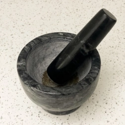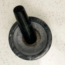 Blago hrapava unutarnja površina zdjele i tučka povećava trenje i ubrzava usitnjavanje papra, kima, češnjaka i bilja u pastu uz maksimalno oslobađanje arome.