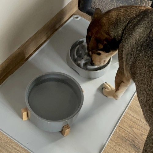 Protuklizna donja strana sprječava pomicanje zdjelica, čak i kada vaš pas jede s puno žara. Podloga se jednostavno pere – dovoljno je isprati i prebrisati krpom. Dimenzija 60 × 40 cm pruža dovoljno mjesta za par zdjelica različitih veličina.