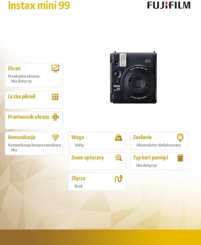 Uživajte u instant fotografiji s Instax Mini 99, koji nudi kompaktan i elegantan dizajn, jednostavno rukovanje i trenutačan ispis fotografija.