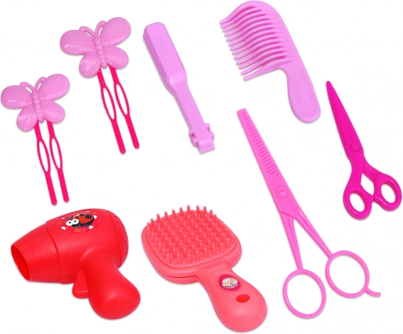 - Kompletan set pribora – češalj, “figaro”, ukosnice i šareni pramenovi.