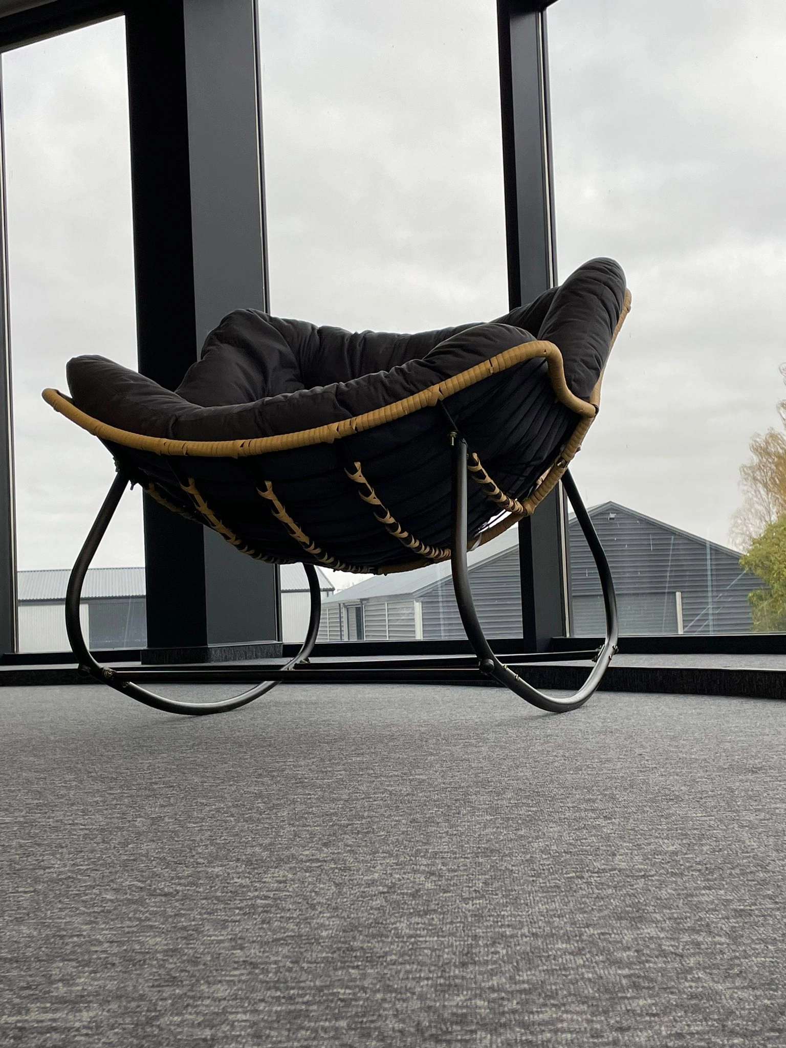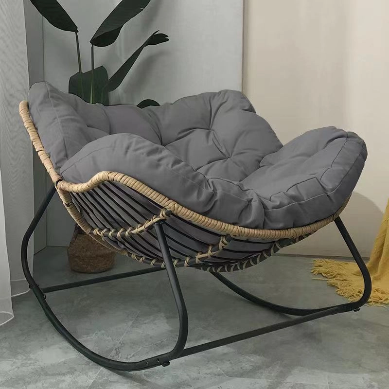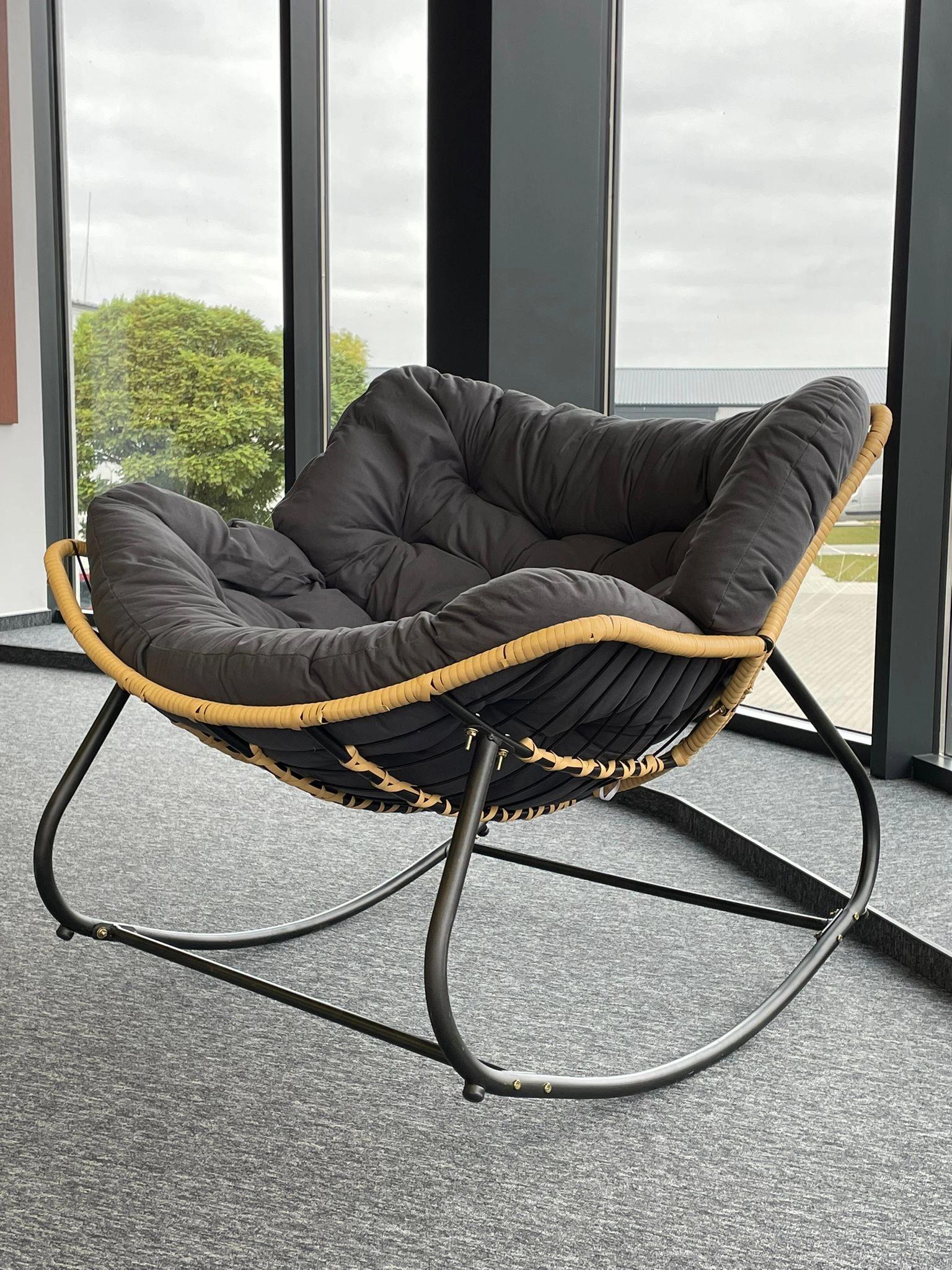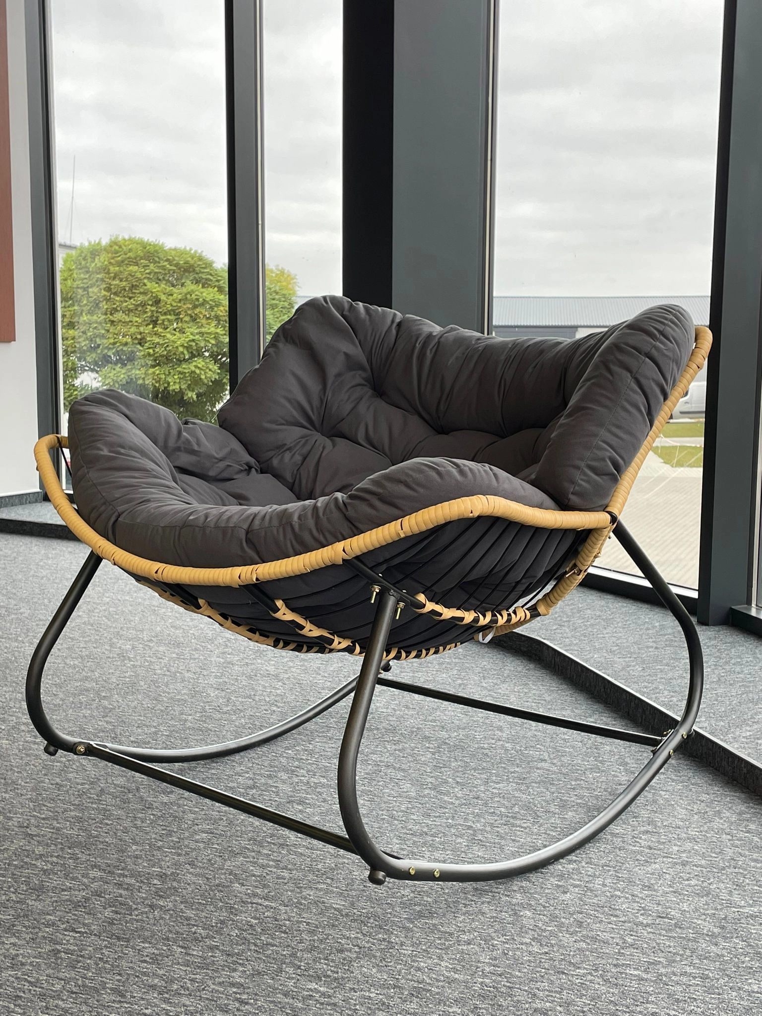 Stilska viseća fotelja izrađena od visokokvalitetnog ratana, idealna za interijere koji kombiniraju prirodne elemente s modernim dizajnom. Meki sivi jastuk pruža iznimnu udobnost, dok robusna konstrukcija osigurava izdržljivost. Ova je fotelja izvrsna opcija za dnevni boravak, spavaću sobu, hotel ili ured te služi kao elegantan akcent u komercijalnim prostorima.