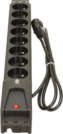 Rack napojna letvica Lestar idealno je rješenje za distribuciju električne energije u standardnim 19" rack ormarima. Sadrži osam utičnica tipa E i ulazni konektor IEC320 C14, što omogućuje priključenje više uređaja odjednom. Opremljena je prenaponskom zaštitom i automatskim osiguračem za maksimalnu sigurnost.