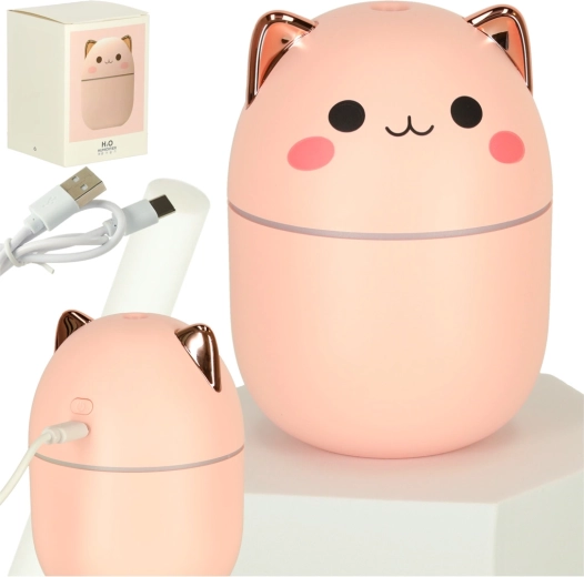 Stilskog ružičastog dizajna, ovlaživač zraka u obliku mačkice spaja učinkovito ovlaživanje s dekorativnim izgledom. Zahvaljujući spremniku 250 ml radi nekoliko sati bez dolijevanja vode te pomaže ublažiti suhi zrak, nadražene dišne puteve i suhu kožu.