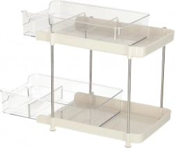 Ovaj dvorazinski akrilni organizator unosi maksimalan red u svakodnevicu. Prozirne posudice olakšavaju snalaženje u pohranjenim stvarima, a izvlačna konstrukcija osigurava trenutačan pristup svemu što trebate.