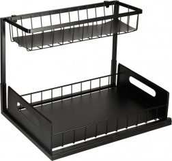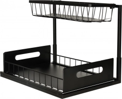 Optimizirajte prostor ispod sudopera s dvoslojnim metalnim organizatorom koji pruža pametno i pregledno spremanje sredstava za čišćenje, boca i manjih dodataka. Zahvaljujući izvlačnoj donjoj košari lako ćete dohvatiti i stvari spremljene straga, bez nepotrebnog prekopavanja.