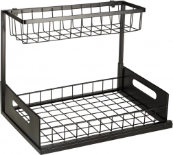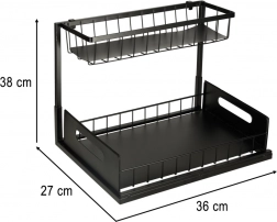 Robusna, cjelometalna izvedba u crnoj boji odlično pristaje modernoj kuhinji i kupaonici. Konstrukcija je osmišljena tako da odgovara većini ormarića i ne ometa vodovodne instalacije. Idealno za deterdžente, spužvice, vrećice, rukavice i ostali pribor.