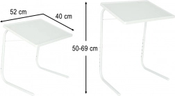 Stolić se u nekoliko sekundi sklapa i sprema ispod kreveta, u ormar ili u kut prostorije. Prostrana radna površina 52 × 40 cm pruža mjesto za laptop, knjigu i dokumente, pa je idealan za rad od kuće, čitanje i posluživanje.