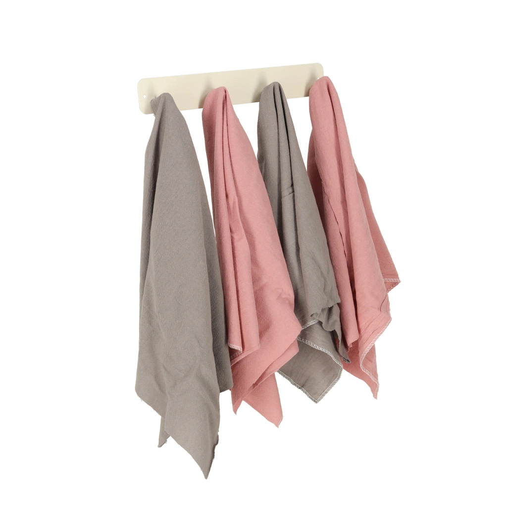 Elegantna krem vješalica izrađena je od kvalitetnog metala koji je trajan i otporan na vlagu – idealan izbor za kupaonicu i predsoblje. Četiri ravnomjerno raspoređene kukice pouzdano nose lagane ručnike i teže ogrtače.