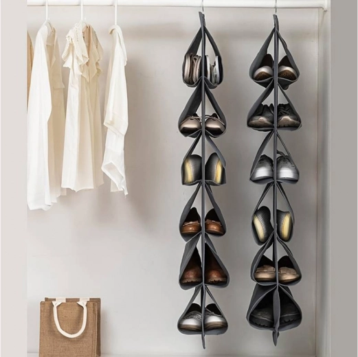 Dovedite red u ormar u trenu. Ovaj viseći organizator nudi 12 prostranih džepova za pregledno odlaganje obuće, štedi prostor na podu i drži parove uredno zajedno. Zahvaljujući čvrstoj netkanoj tkanini i metalnoj kuki lako se vješa na garderobnu šipku i osigurava brz pristup vašoj obući svakog dana.