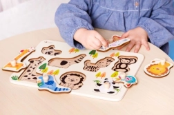 Drveni komadići podsjećaju na životinje iz ZOO-a, što pomaže djeci u razvijanju njihove moždane aktivnosti i kreativnog razmišljanja.