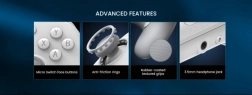 Teksturirane drške i uravnotežen oblik pružaju udobnost i tijekom dugih sesija. Stražnja strana je dizajnirana za stabilno držanje i precizno upravljanje.