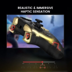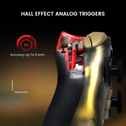 Kontroler je autoriziran za XBOX i koristi Hall efekt tehnologiju za dug vijek trajanja bez drifta. Analogni okidači s glatkim hodom precizno očitavaju dubinu pritiska – idealno za trkaće i akcijske igre. Četiri vibracijska motora (u rukohvatima i u okidačima) donose realističan haptički feedback.