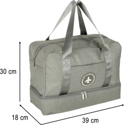Spremate se za put? Trebat će vam praktična siva putna torba. Ova torba ima 5 različito velikih pregrada, koje olakšavaju organizaciju odjeće, kozmetike, dokumenata ili elektroničkih dodataka. Jedna od pregrada opremljena je posebnom vodootpornom oblogom za zaštitu od vlage - idealna za spremanje mokrih stvari ili tekuće kozmetike.