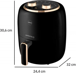 Jednostavno upravljanje omogućuju dva rotirajuća gumba za temperaturu i vrijeme. Na raspolaganju je 7 automatskih programa uključujući pomfrit, ribu, odrezak ili pečenje muffina, kao i ručni način rada za maksimalnu kontrolu. Izvadiva košara i rešetka s neljepljivom površinom olakšavaju čišćenje, dok materijali bez BPA, hladna ručka i toplinski izolirano kućište brinu o sigurnosti.