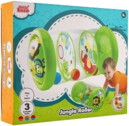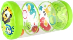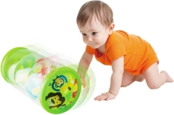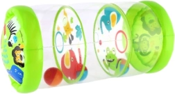 Valjak je ukrašen šarenim ilustracijama životinja i sadrži tri loptice koje pri pokretu nježno zvečkaju, što zabavlja i stimulira djecu.