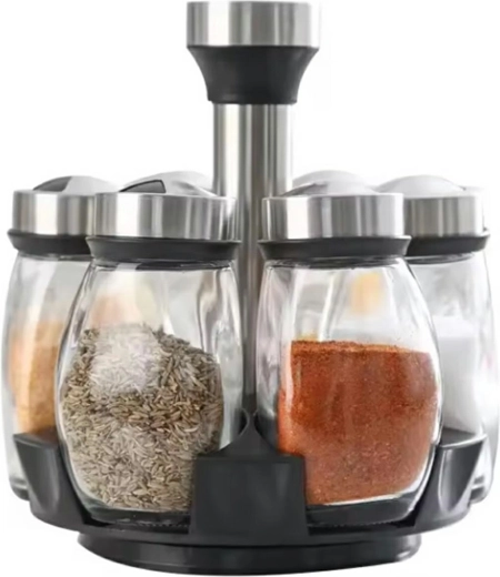 - Set 6 prozirnih posuda za začine zajedno sa posebnom rotirajućom bazom.
