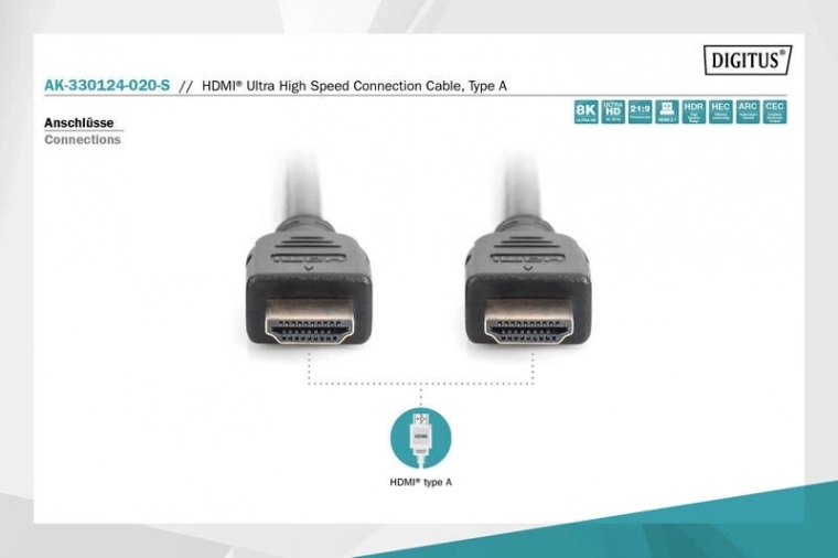 Kabel je opremljen pozlaćenim konektorima za minimalne gubitke signala i dug vijek trajanja. Donosi kompletan skup funkcija kao što su ARC/eARC, CEC, HEC, Lip Sync, 3D, format 21:9 i 32-kanalni zvuk. Odlično povezuje Blu-ray reproduktore, igraće konzole, set-top boxove, računala i TV/monitore.