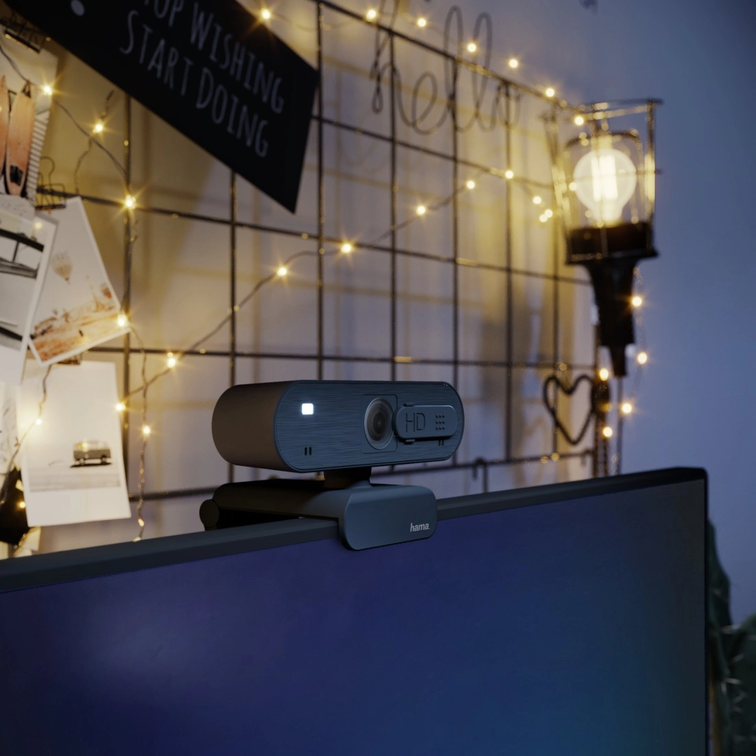 Integrirana regulacija osvjetljenja automatski prilagođava sliku trenutačnim svjetlosnim uvjetima. Za vašu privatnost brine uvlačna poklopna objektiva. Jednostavna instalacija Plug & Play (UVC) bez upravljačkih programa i univerzalno pričvršćivanje – klip za monitor i stativni navoj 1/4" – daju vam fleksibilnost za svaki radni stol.