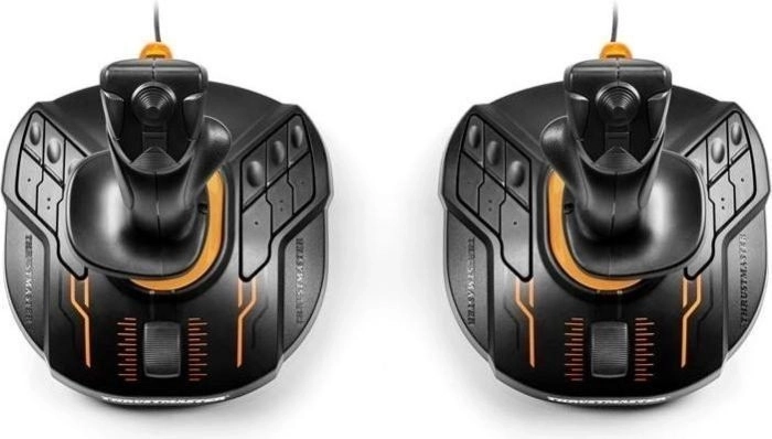 Upravljajte svemirskim i zrakoplovnim simulatorima objema rukama uz set od dva joysticka THRUSTMASTER Space Sim Duo. Nudi dvoručno igranje, na svakom joysticku 16 programabilnih tipki, 4 osi s rotacijskim upravljanjem i magnetne senzore H.E.A.R.T za vrhunsku preciznost. Ergonomska konstrukcija, izmjenjivi elementi za dešnjake i ljevake te stabilna otežana baza osiguravaju udobnost i sigurnost u najnapetijim okršajima.