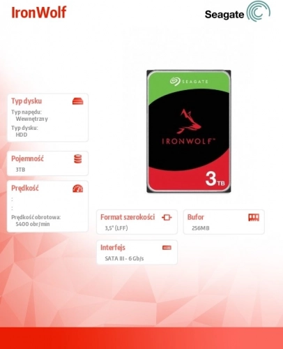 Disk IronWolf kapaciteta 3 TB dizajniran je za potrošačke i komercijalne NAS sustave, osigurava izdržljivost, pouzdanost i skalabilnost u višepoložajnim okruženjima s cjelodnevnim radom.