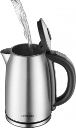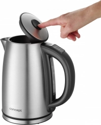 Dizajn od nehrđajućeg čelika s glatkim dnom i skrivenim grijaćim elementom smanjuje nakupljanje nečistoća i olakšava čišćenje. Veliki uljevni otvor i tipkasto otvaranje poklopca čine punjenje i rukovanje trenutačnim. Zahvaljujući 360° okretnoj bazi s prostorom za spremanje kabela, kuhalo možete odložiti iz bilo kojeg smjera.