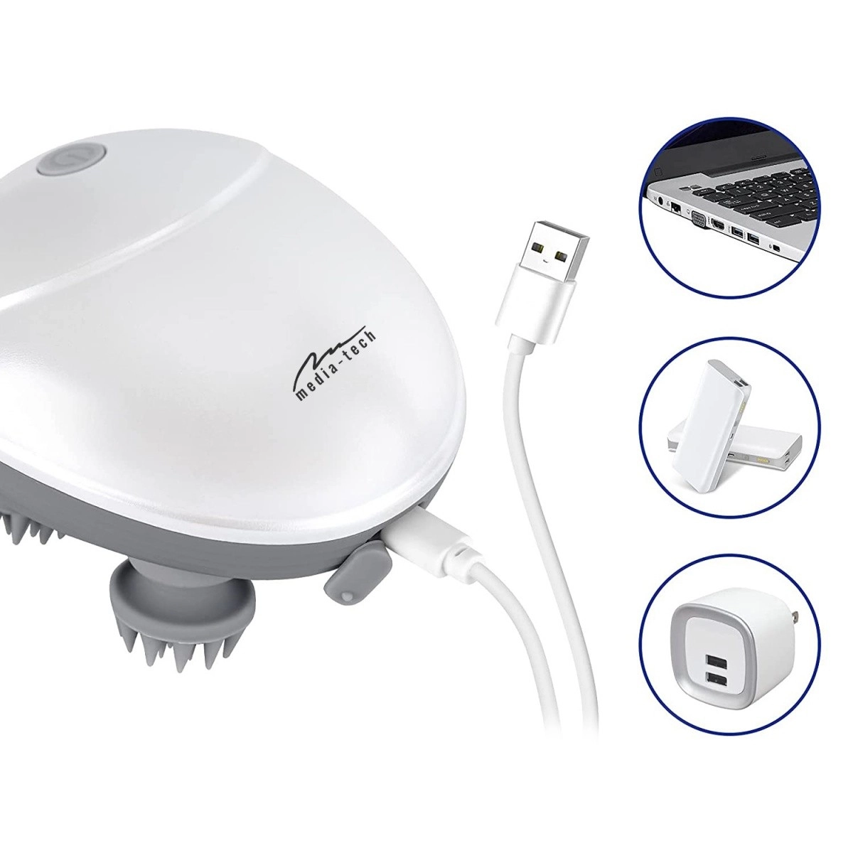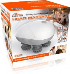 Media-Tech Head Massager je ergonomski ručni masažer koji zahvaljujući četiri meke masažne glave sa silikonskim izbočinama realistično simulira profesionalnu masažu prstima. Lagan je, jednostavan za korištenje i idealan za svakodnevnu upotrebu kod kuće i u uredu.