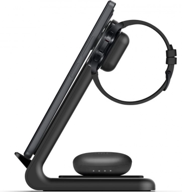 Uredite radni stol pametnom stanicom koja sve rješava odjednom. Bežični punjač 3-u-1 PowerSpot kombinira stalak za telefon, modul za Galaxy Watch (svi modeli) i podlogu za TWS slušalice. Zahvaljujući standardu Qi kompatibilan je s širokim rasponom Apple i Android uređaja.