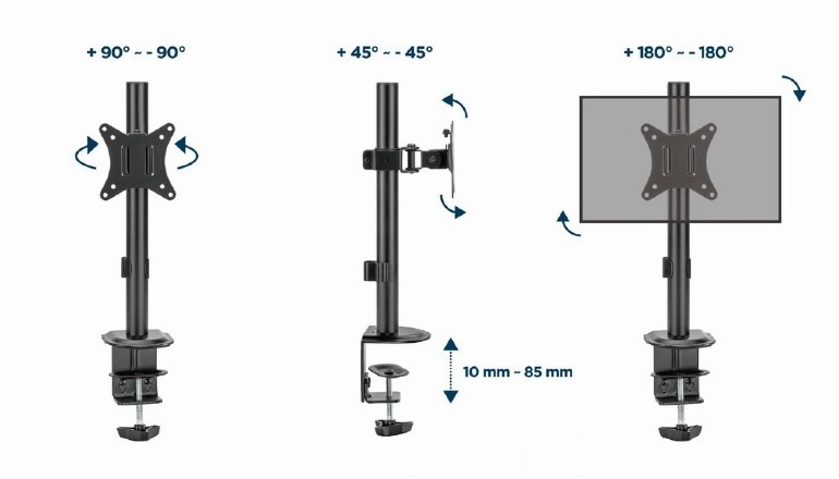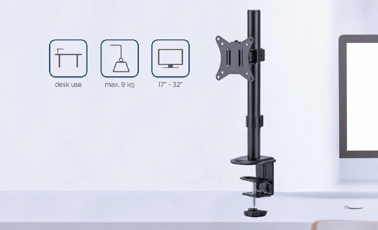 Ovaj nosač monitora s jednim krakom idealan je izbor za svakoga tko traži način kako optimizirati ergonomiju svog radnog prostora. Omogućuje lako podešavanje visine, zakretanje i nagib zaslona prema vašim potrebama.